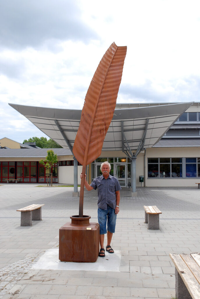 Också en fjäder är byggd på hålrum. Vid Rutsborgsskolan i Bjärred pekar Selles smäckra fjäder upp mot himlen som en solvisare.
